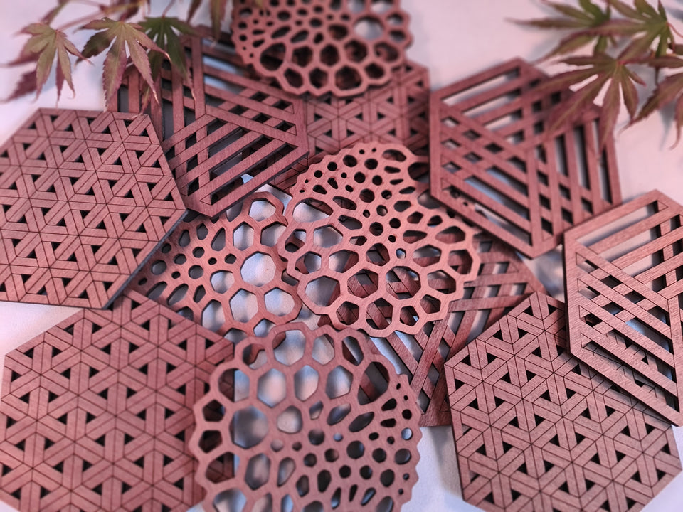 Elk item wordt zorgvuldig in eigen huis gemaakt met behulp van een lasersnijder en graveermachine, met materialen zoals acryl, hout en leer. Dit zorgt voor een persoonlijke touch en uitzonderlijke kwaliteit.
