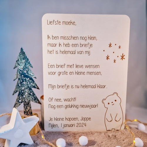 Houten nieuwjaarsbrief