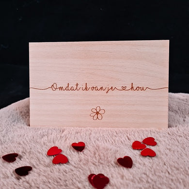 Houten wenskaart "Prettige feestdagen - kerstboom"