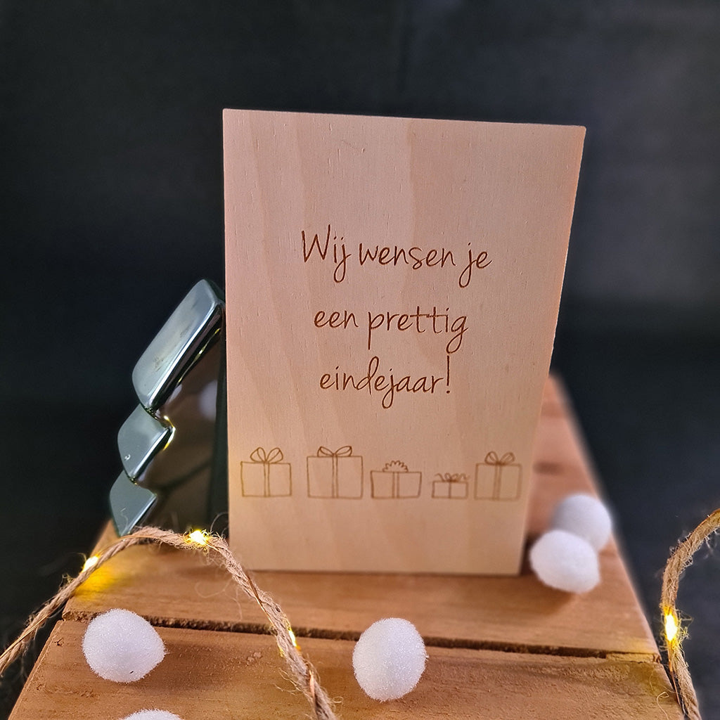 Houten wenskaart "Prettig eindejaar"