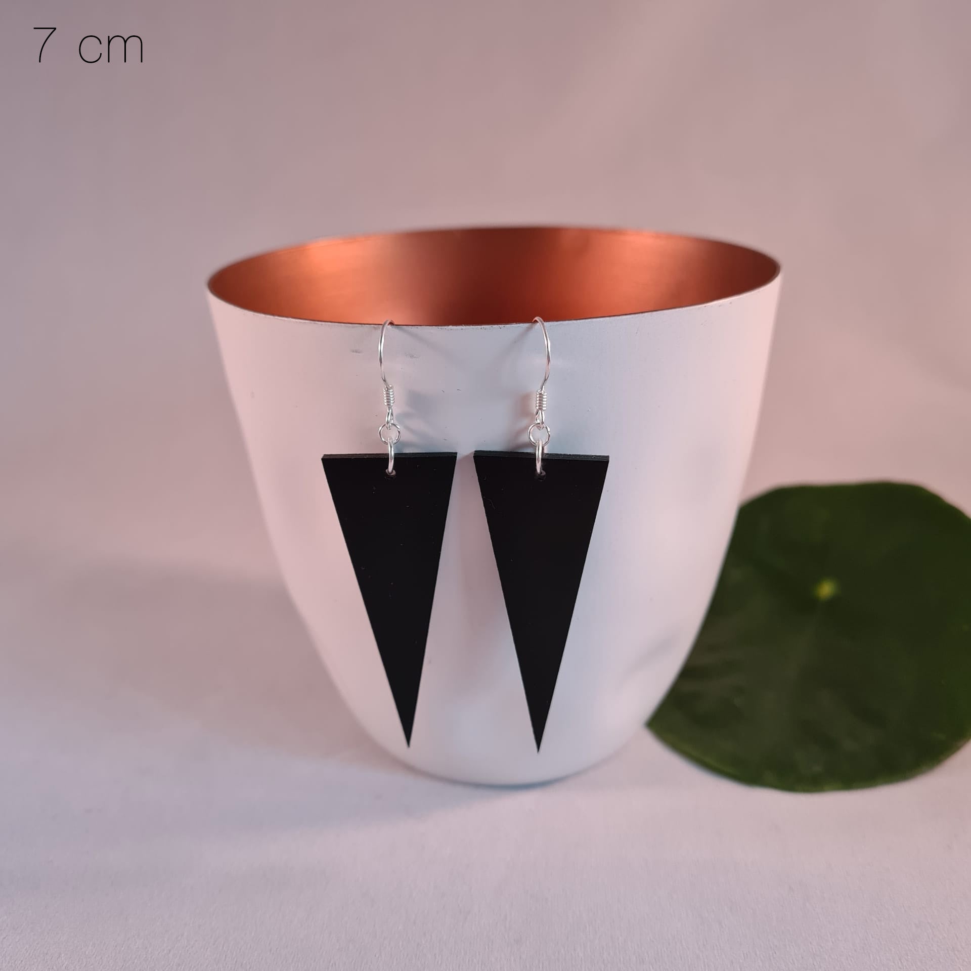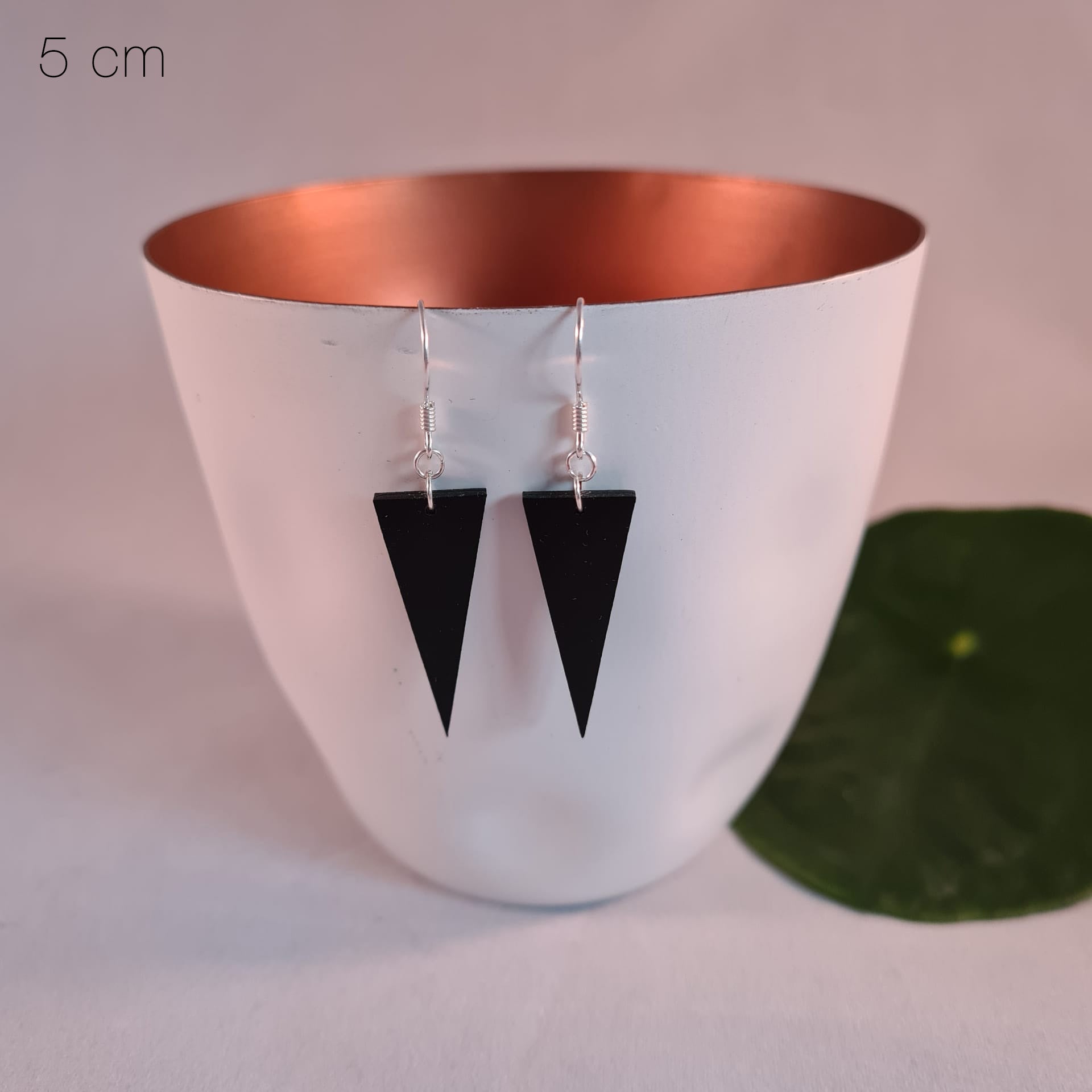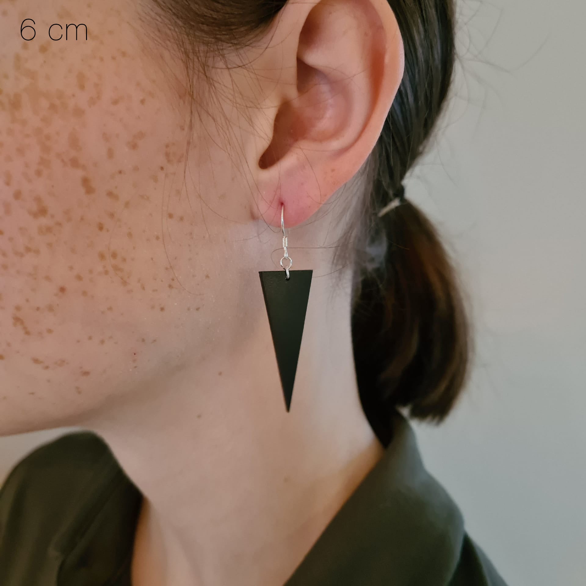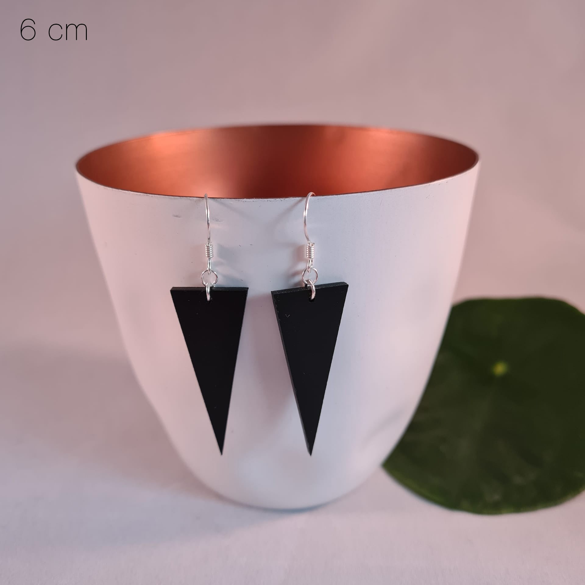 Deze zwarte houten oorbellen in driehoekvorm stralen moderne eenvoud en kracht uit. Hun strakke lijnen en diepe, matte tint geven een eigentijdse uitstraling die zowel subtiel als verfijnd is.