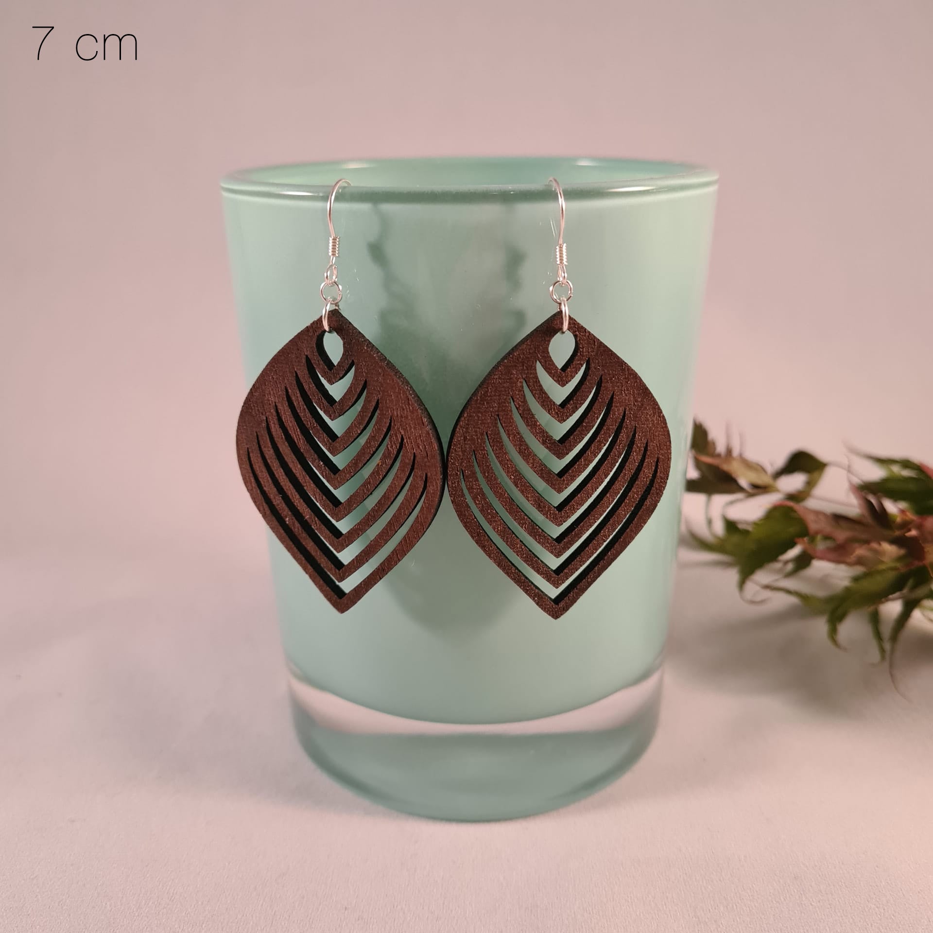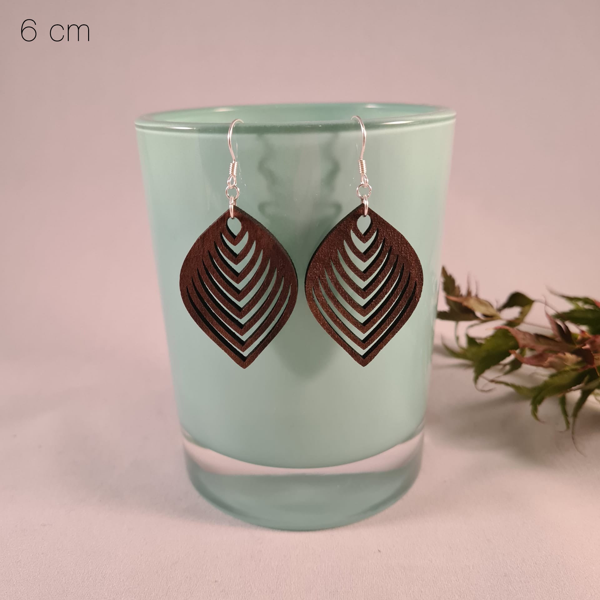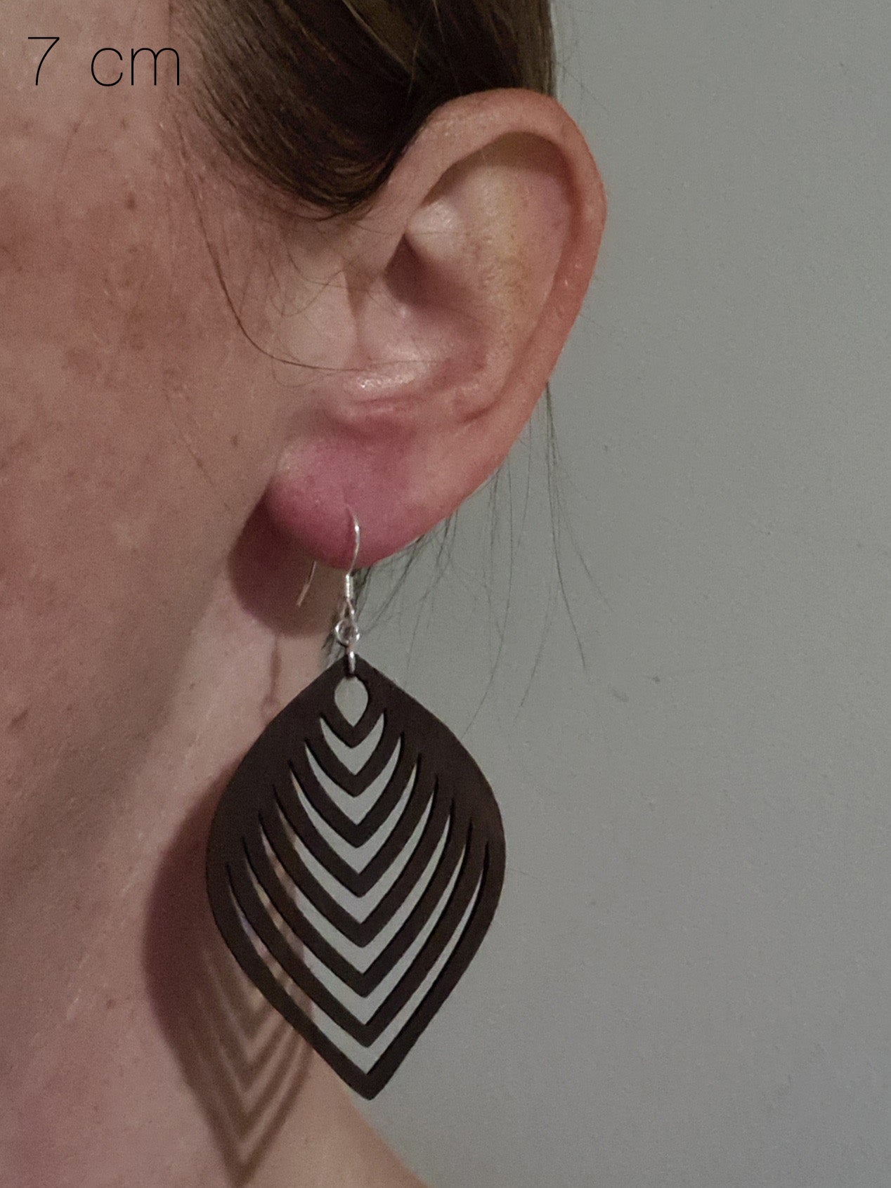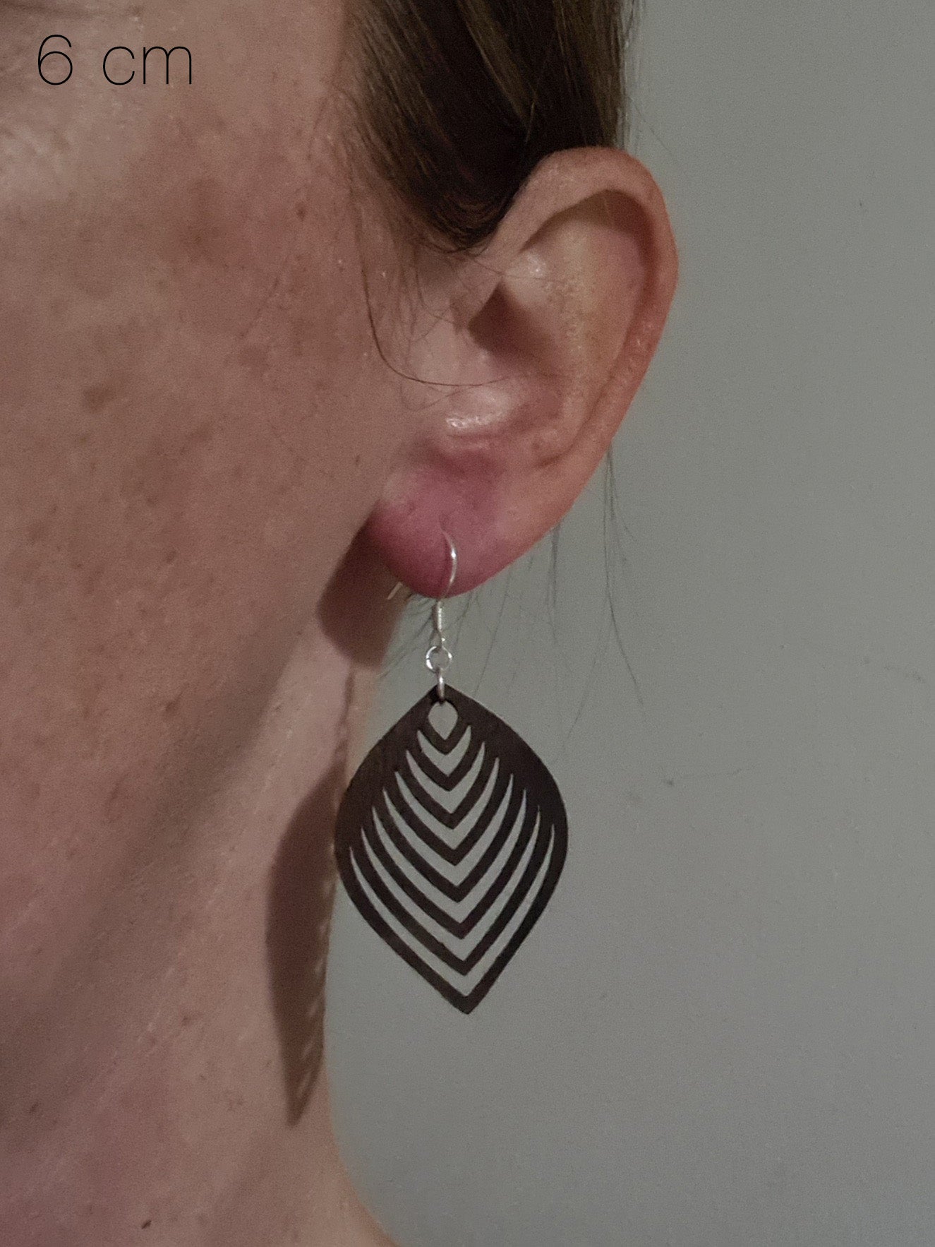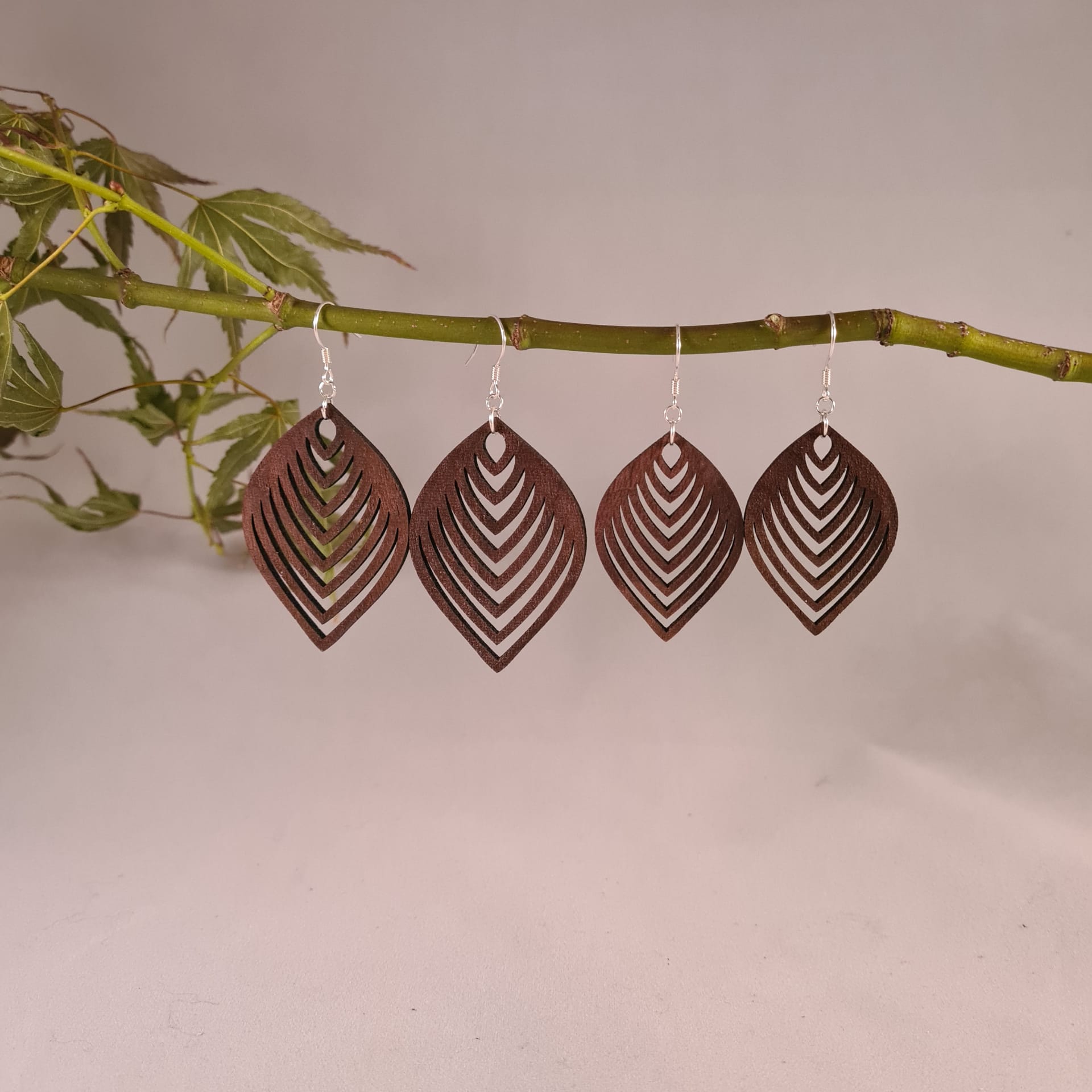 Elegante houten oorbellen in abstracte bladvorm. Licht, natuurlijk en stijlvol – een harmonie tussen kunst en natuur.