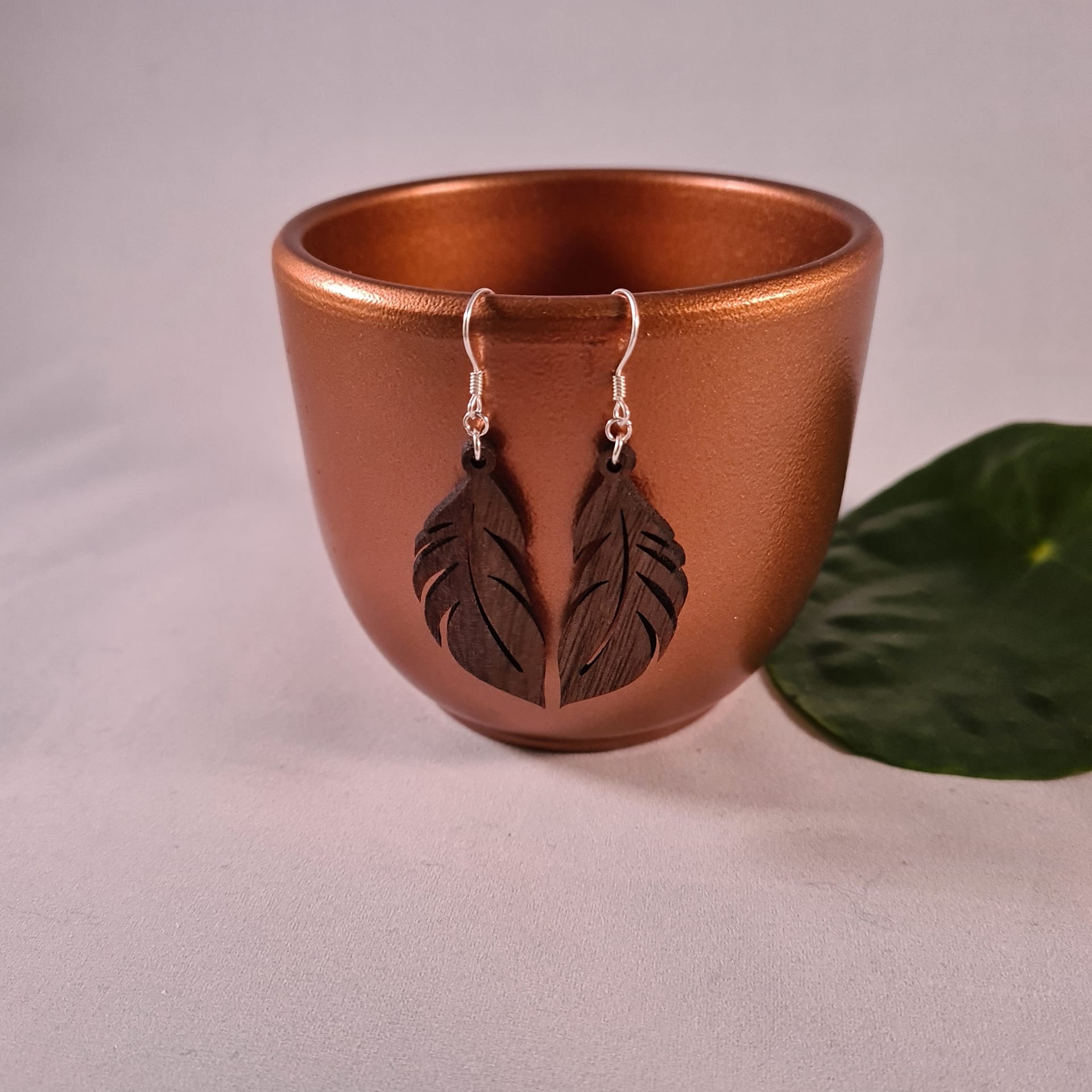 Deze houten oorbellen in de vorm van sierlijke veertjes brengen een gevoel van lichtheid en vrijheid met zich mee. Hun zachte lijnen en natuurlijke uitstraling maken ze tot een tijdloze favoriet die bij elke stijl past.