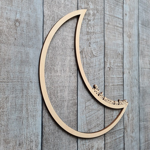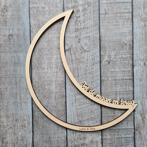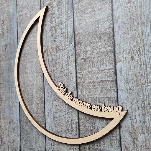 Met deze houten maan kan je iemand laten weten dat je hen graag ziet "tot de maan en terug". Heel leuk om met een touwtje aan de muur te hangen.