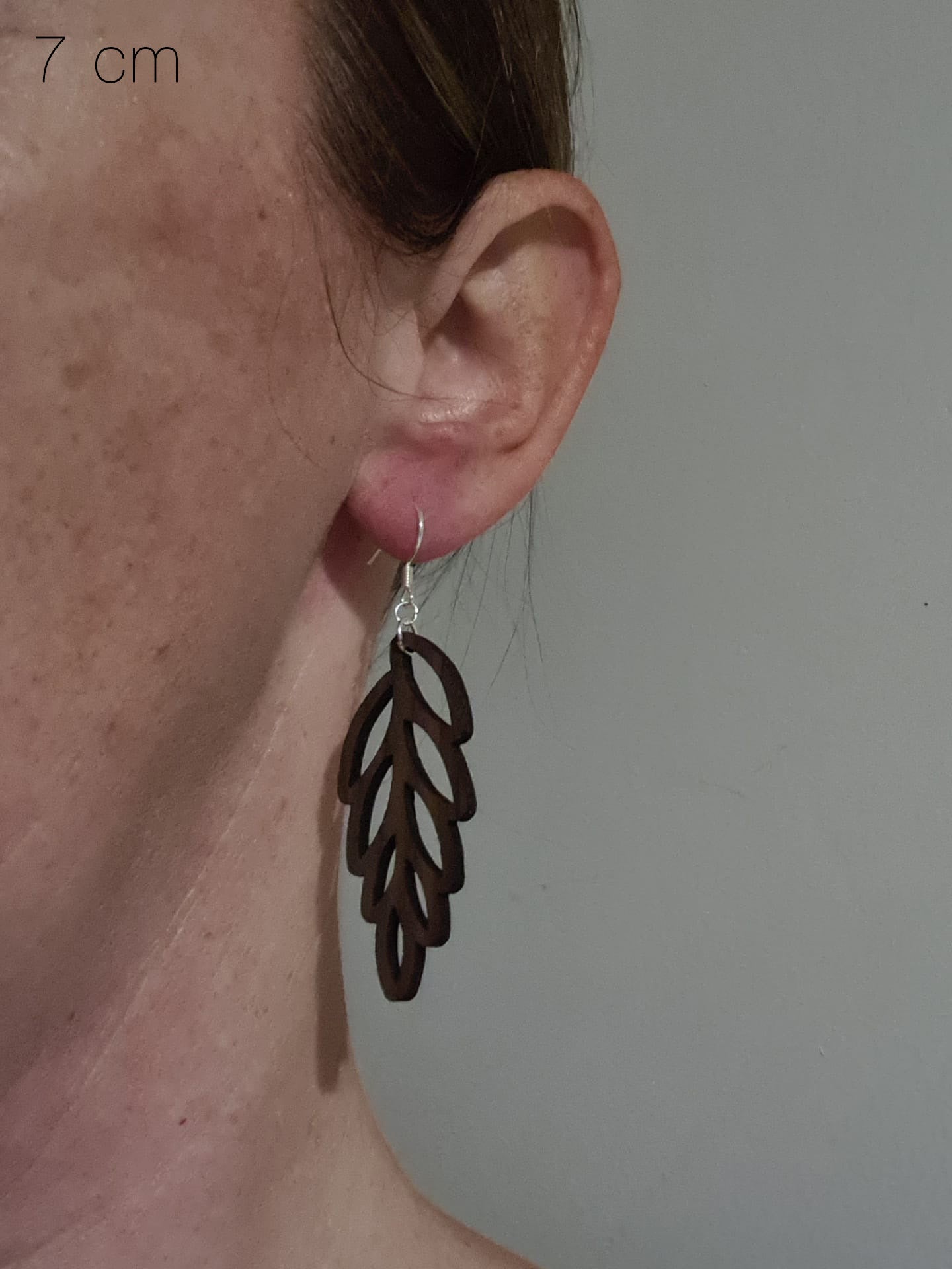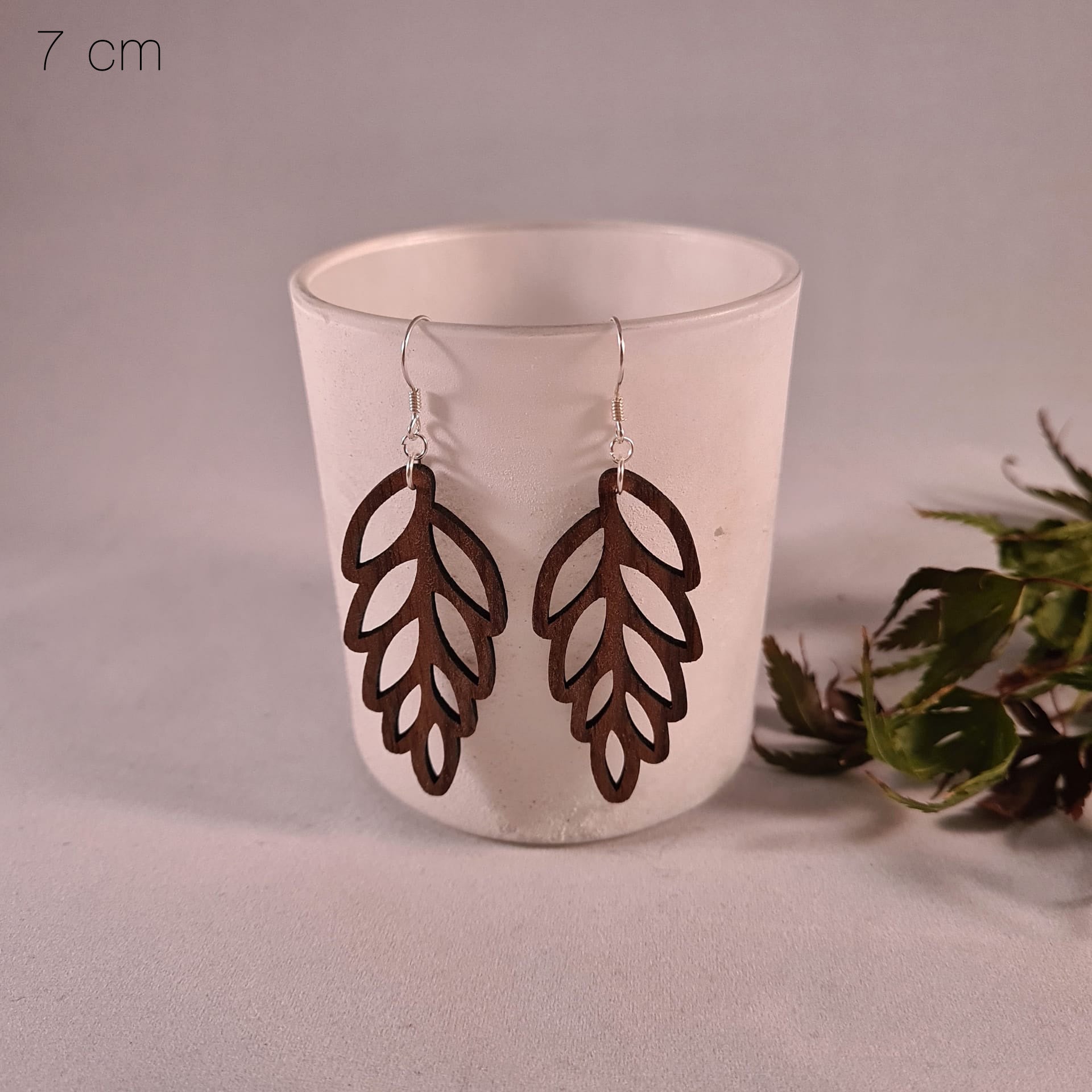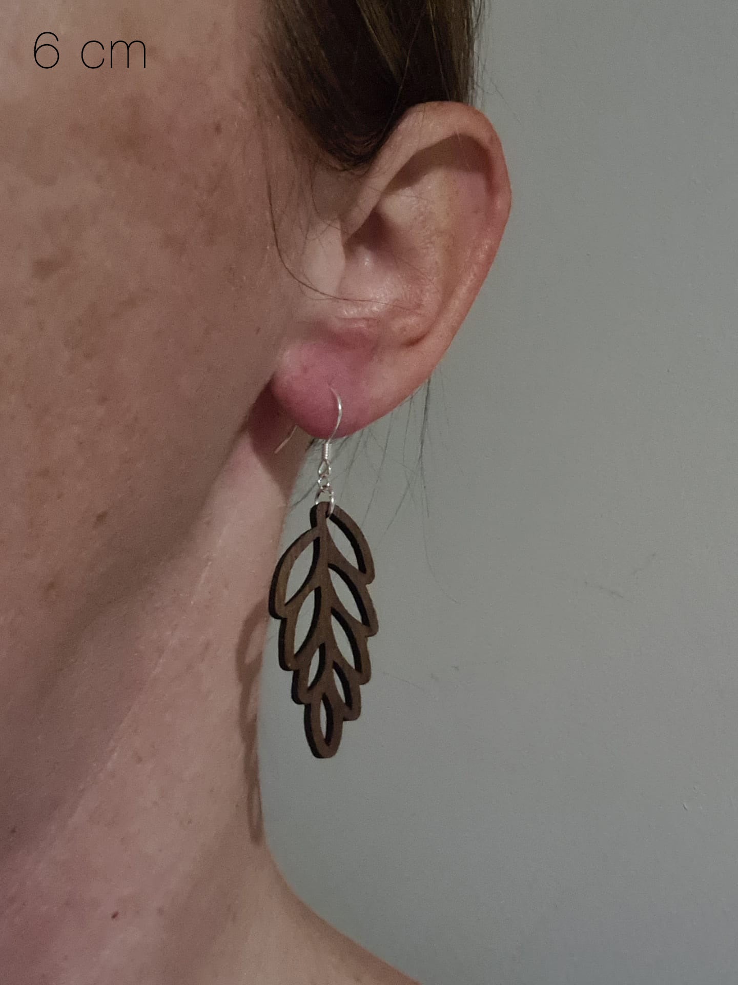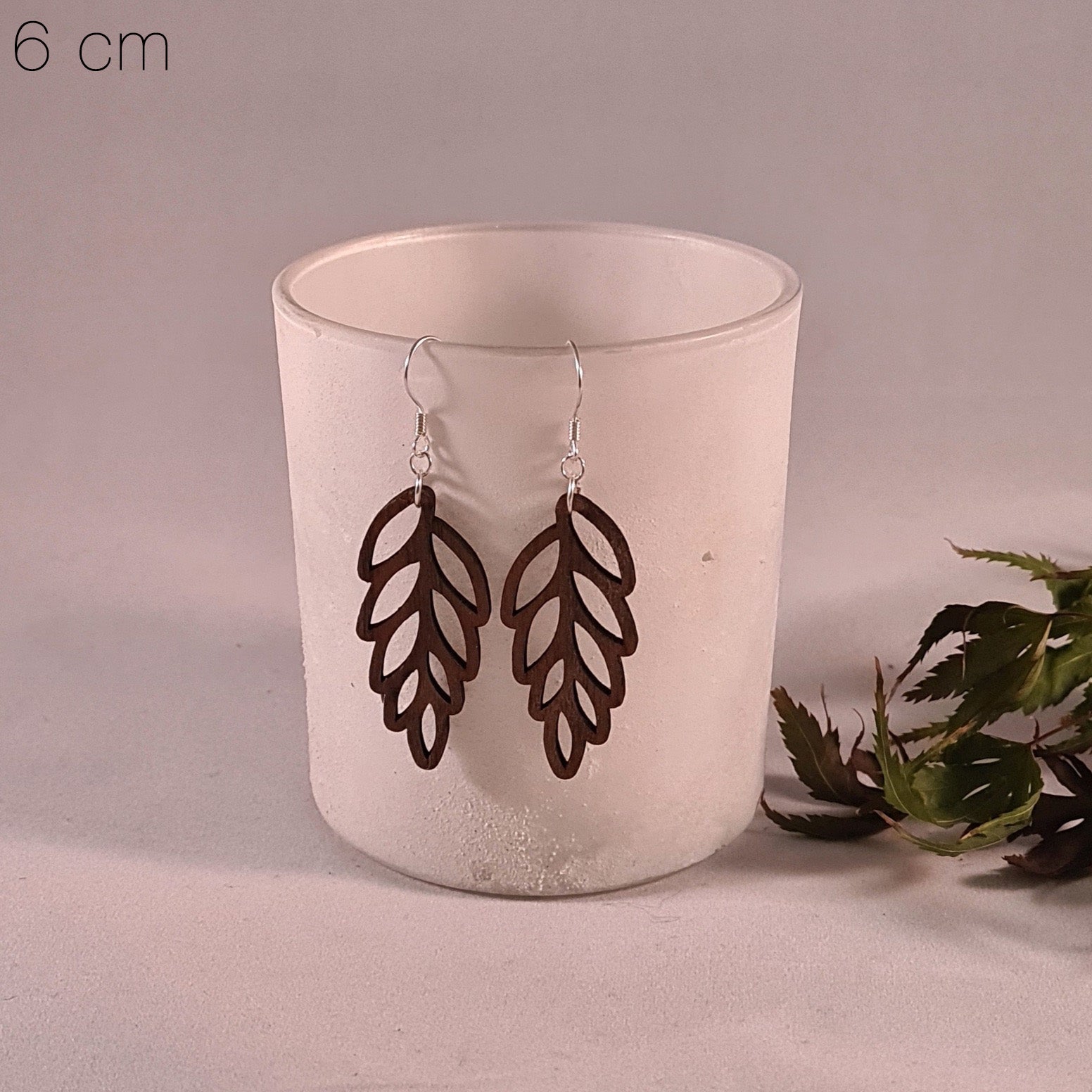 Deze houten oorbellen met verfijnde blaadjesvorm zijn een ode aan de natuur, met een ontwerp dat licht en beweging vangt in elke lijn. De warme houttint en het open patroon creëren een zachte, natuurlijke uitstraling die moeiteloos bij elke stijl past.
