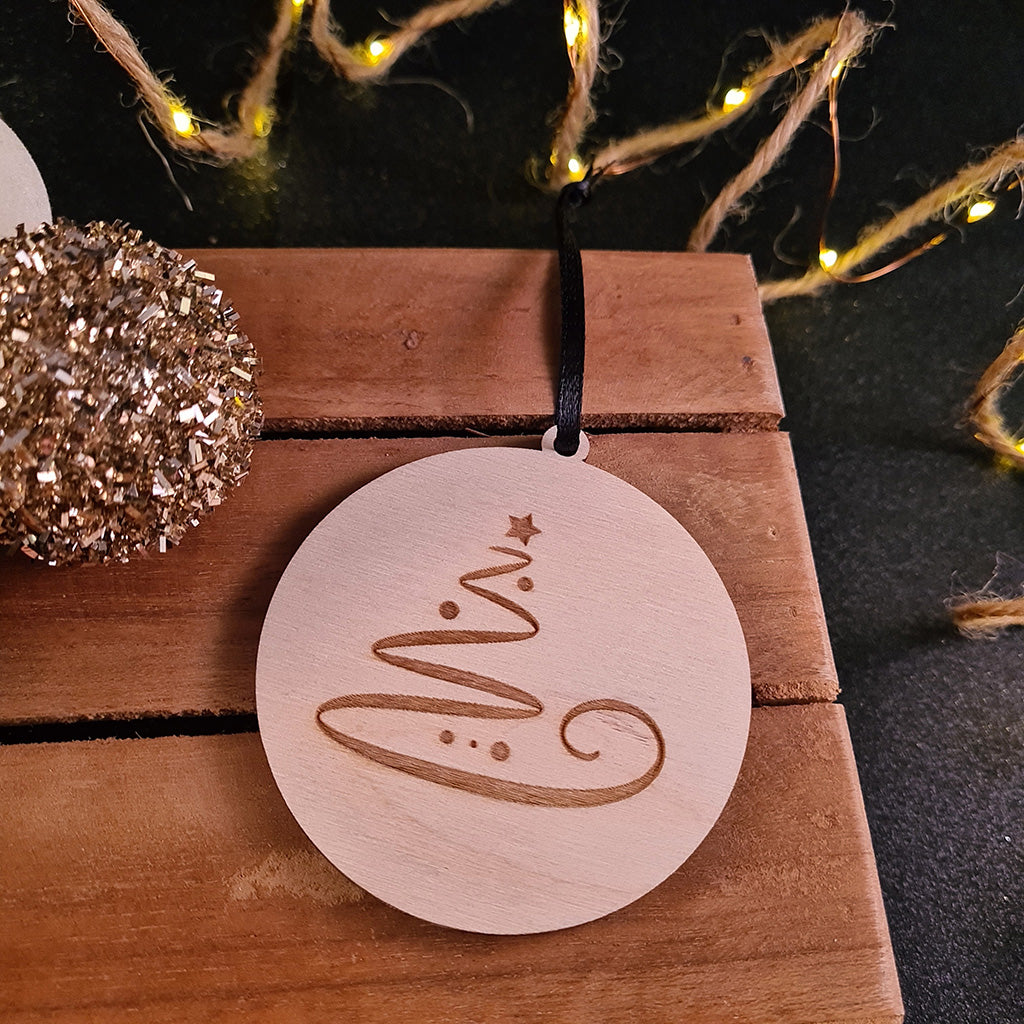 Vier houten schijfjes vol kerstvreugde — elk met een speelse kerstboomgravure. Natuurlijke eenvoud die warmte en gezelligheid in huis brengt.