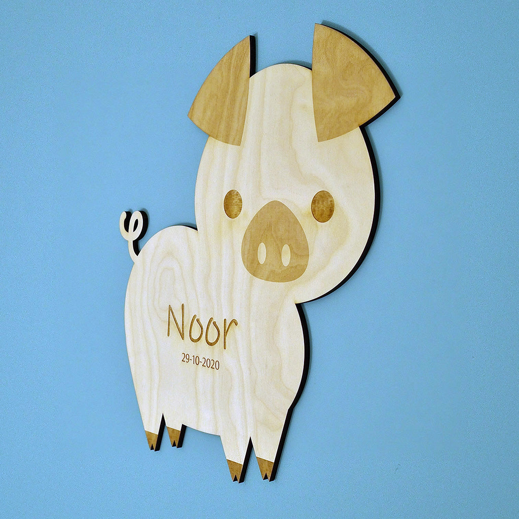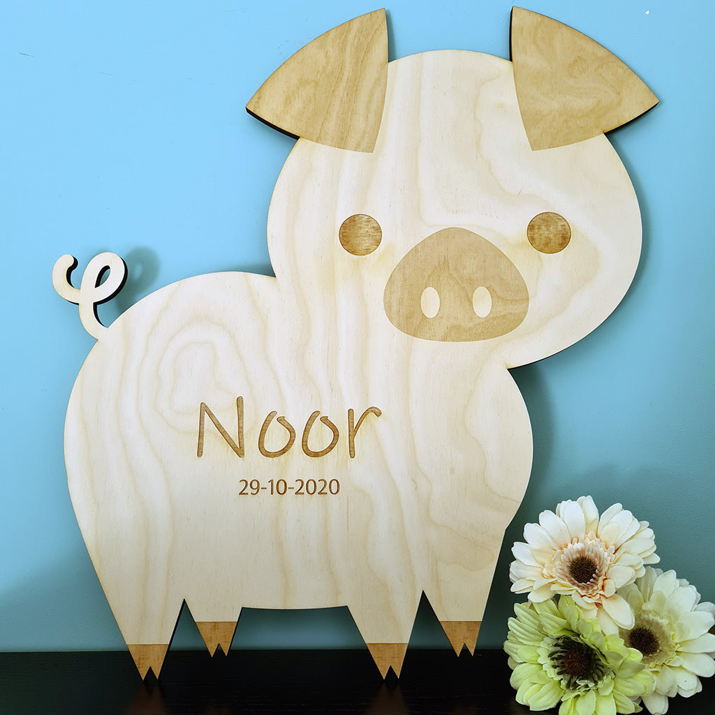 Op dit schattige varken kan je de naam, geboortedatum, gewicht en lengte van je kindje laten graveren. Uiteraard kan je ook enkel de naam erop laten zetten, het aantal gegevens kan je zelf kiezen.