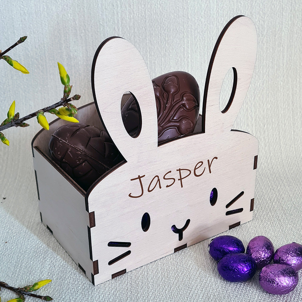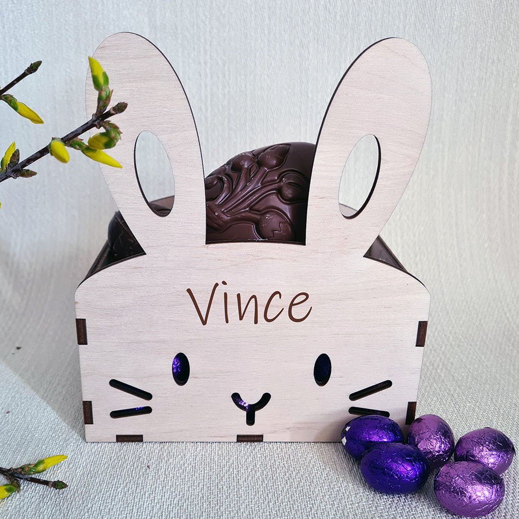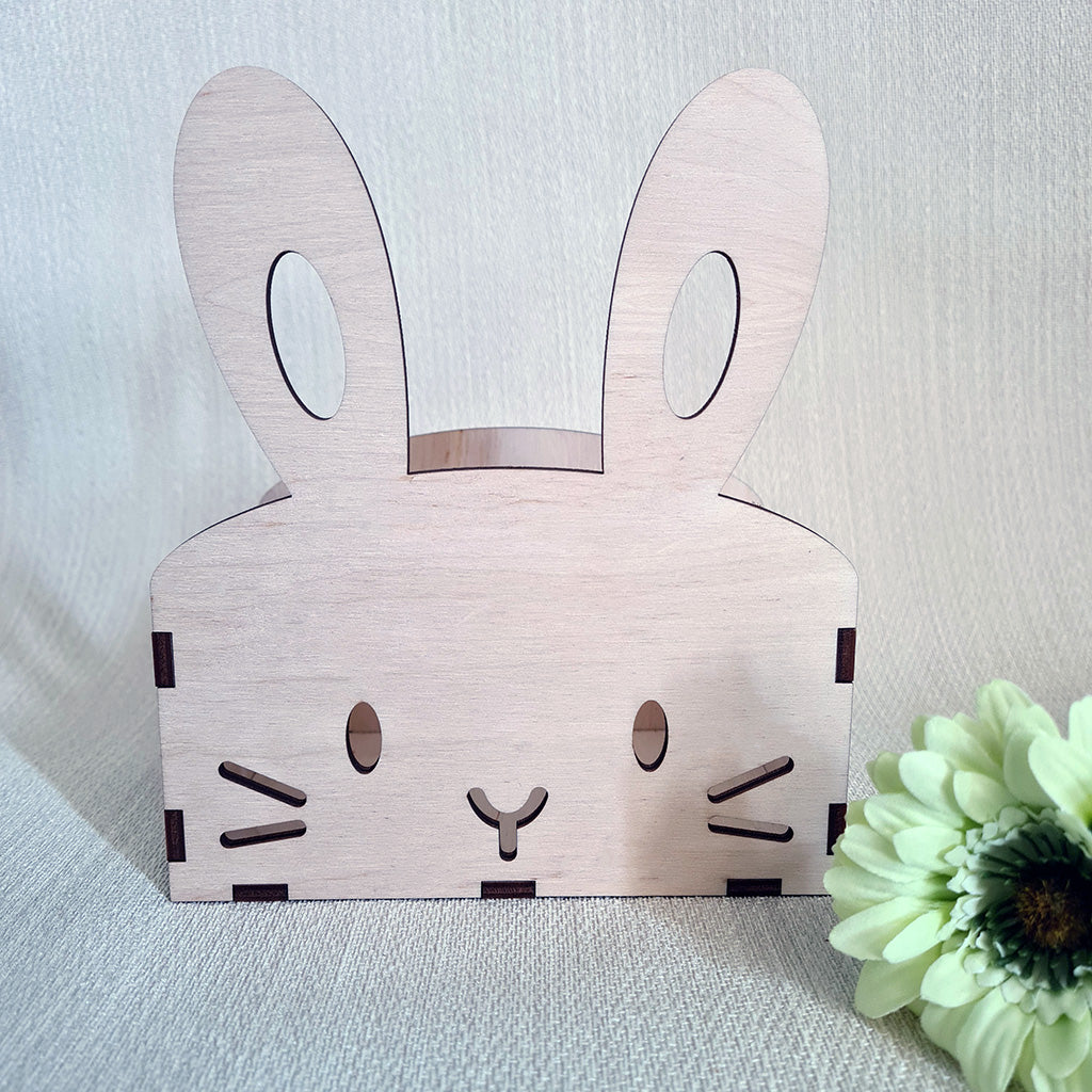 Dit schattige houten paasmandje kan je vullen met paaseitjes maar is ook heel leuk om een plantje in te zetten.